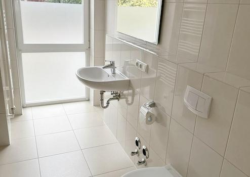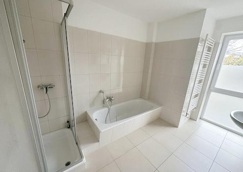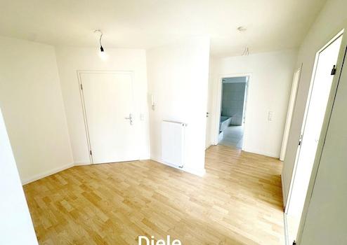 Küche und Badezimmer sind gefliest, in den übrigen Räumen ist helles Laminat verlegt. Zu der Wohnung gehört ein Keller, Fahrradkeller und Trockenraum ebenso kann ein Stellplatz angemietet werden