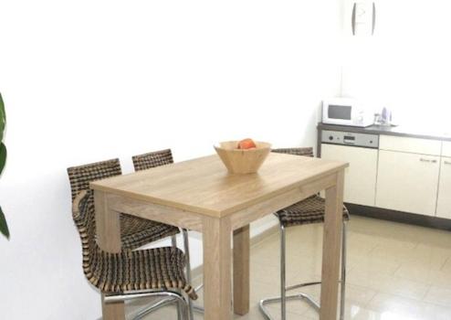 Eine Einbauküche mit allen Elektrogeräten ist vorhanden.