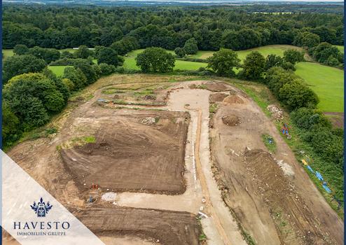 Die Erschließungsarbeiten sind bereits in vollem Gange und im Zeitplan. Die Arbeiten schreiten sichtbar voran und die Fertigstellung der Erschließung ist für das 4. Quartal 2025 verbindlich vorgesehen.
