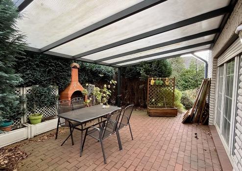 Zur Ausstattung des Grundstücks gehören eine überdachte Terrasse an der Ostseite, ein kleines Gartenhaus, eine Doppelgarage, ein Carport sowie ein zusätzlicher Pkw Stellplatz.