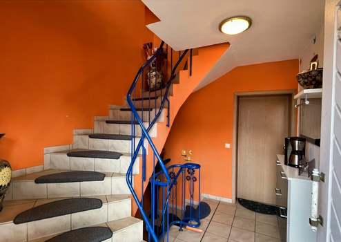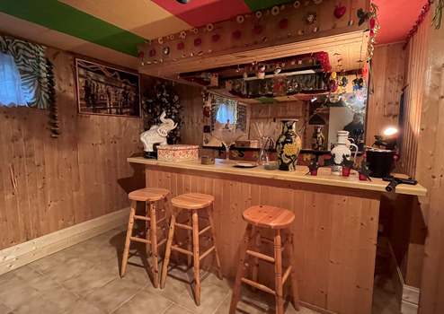 Der Teilkeller ist vom Haupteingang über eine Treppe erreichbar und führt zu einem zentralen Flur, in dem die Strom , Gas und Wasserzähler aller Wohneinheiten angebracht sind. Neben dem Heizungsraum mit zusätzlicher Lagerfläche befinden sich zwei großzügige Mehrzweckräume, von denen einer bereits mit einer Bar ausgestattet ist – ideal für Feiern oder für Hobbys.