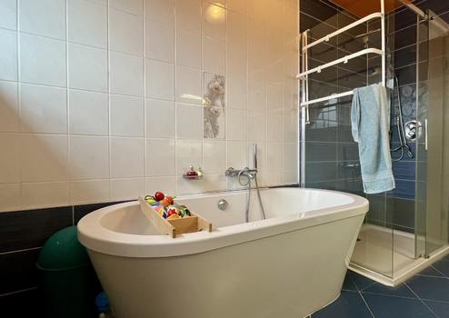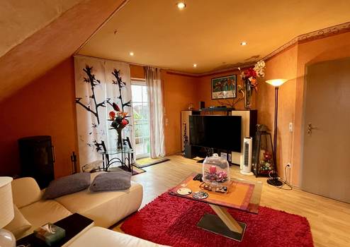 Das Obergeschoss (ca. 88 m²) ist derzeit noch bewohnt, kann jedoch nach Absprache kurzfristig freigestellt werden. Hier finden Sie ein gemütliches Wohnzimmer mit einem behaglichen Ofen, der an kühlen Abenden für wohlige Wärme sorgt, sowie eine Südküche, (inklusive Elektrogeräte), die genügend Raum für eine Sitz- und Essgelegenheit bietet. Zwei weitere Schlafzimmer – ein Eltern und ein Kinderzimmer – sowie ein Gäste WC und ein voll ausgestattetes Familienbad mit Badewanne, Dusche, WC, Waschbecken und Anschluss für eine Waschmaschine stehen zur Verfügung. Der teils überdachte Südbalkon eröffnet einen fantastischen Ausblick über Belm.