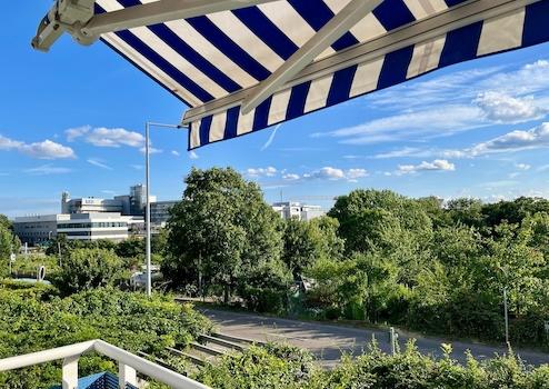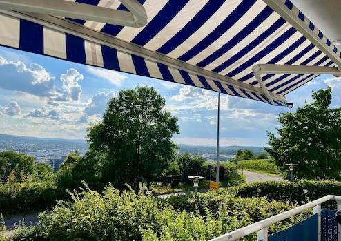 - Balkon mit Markise und Ausblick