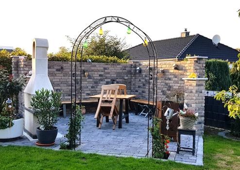 Sitzecke mit Außengrill.