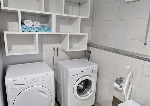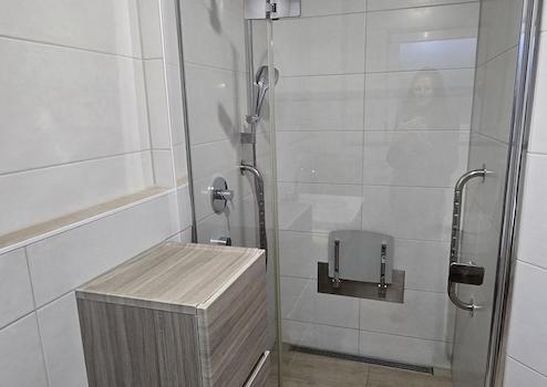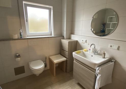 1 Bad mit Fenster, barrierefreier Dusche, Toilette, Waschbecken und Waschmaschinen- und Trockneranschluss