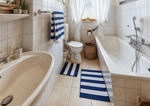 - Badezimmer ausgestattet mit Wanne und Dusche