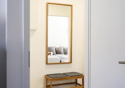 In der gesamten Wohnung, mit Ausnahme des Badezimmers, ist edler und wasserfester Vinylboden in schicker Holzoptik verlegt. Das Badezimmer ist mit neuen Premium-Elementen ausgestattet und beinhaltet eine Dusche, ein WC, einen Waschtisch mit Unterschrank, einen modernen Spiegelschrank mit integrierter Beleuchtung und wird durch die hochwertigen Fliesen in schicker Optik abgerundet.