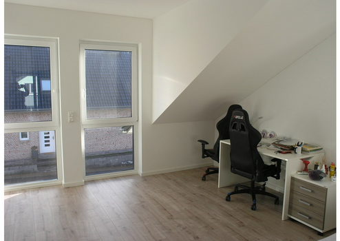 Obergeschoss: Hier befinden sich zwei helle, geräumige Zimmer. Das Elternschlafzimmer verfügt über einen eigenen Balkon mit einem traumhaften Weitblick über die Wetterau. Das luxuriöse Tageslichtbad ist mit einer Badewanne und einer bodengleichen Dusche ausgestattet.