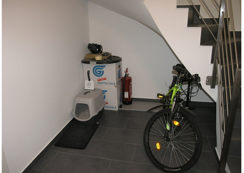 Heizsystem: Effiziente Luft-Wasser-Wärmepumpe. Besonders hervorzuheben ist die Fußbodenheizung in allen Etagen, inklusive des kompletten Kellergeschosses.