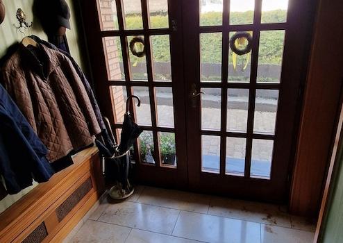 Die Doppelgarage bietet ohne weiteres Platz für zwei große Fahrzeuge und Zubehör und ist mit einem Hörmann-Garagentorantrieb sowie Warm- und Kaltwasseranschluss ausgestattet.