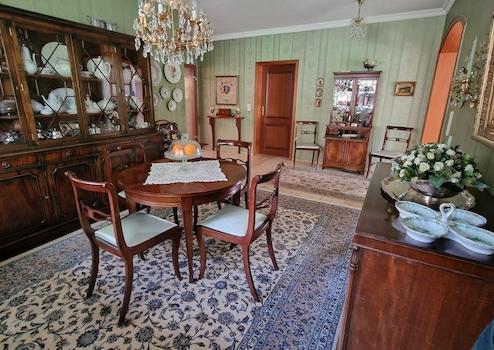 Der Grundriss des Hauses ist durchdacht und zeitlos, mit klaren Linien und einer für das Baujahr unüblich offenen Raumaufteilung in Wohn- und Essbereich. Dies wird zusätzlich durch die mit 2,65 m überhohen Decken mit Stuckleisten im gesamten Erdgeschoss unterstrichen.