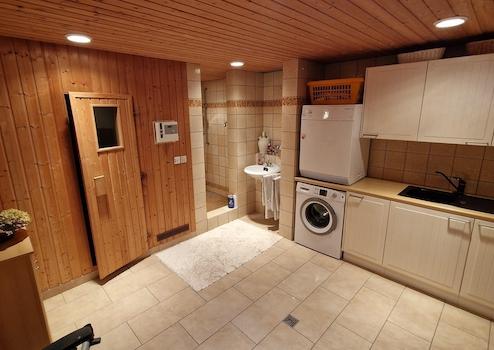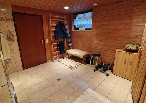 - Multifunktionsraum: Sauna für bis zu 6 Personen, kleiner Sportbereich, sehr große Doppeldusche, integrierte Waschküche