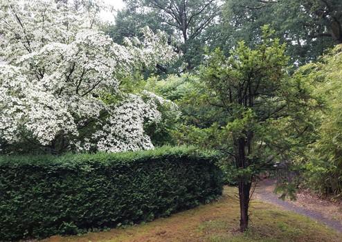 Diese charmante Wohnung vermittelt durch die sie umgebenden und sehr gepflegten Gartenanlagen mit besonderen Gehölzen und altem Baumbestand ein sehr exklusives Raumgefühl .
