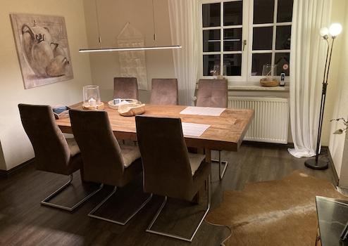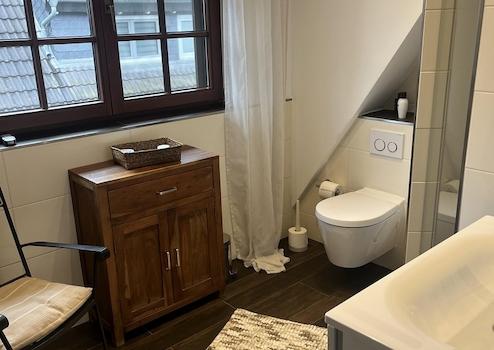 Wohnzimmer, Esszimmer, Küche, Ankleidezimmer, Bad mit Dusche und Badewanne,
