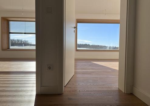 In den Wohnbereichen wurde ein Naturholzboden in geölter Eiche verlegt.