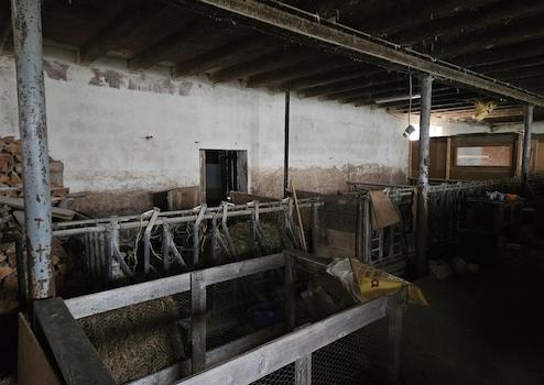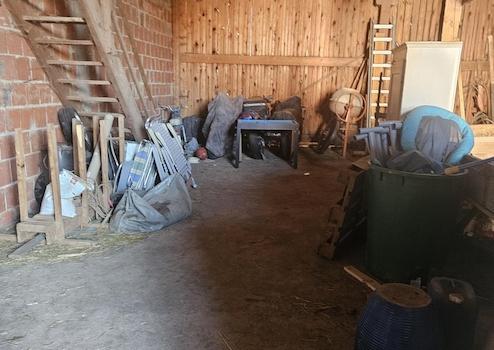 Die beweglichen Gegenstände in Stall und Scheune werden noch teilweiße entnommen, wie beispielsweiße Holz und Traktor.