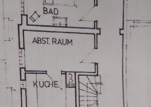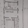 Die hinterlegten Grundrisse stellen im EG den Stand vor dem Umbau zu 1-Zimmerwohnungen dar, im 2. OG ist das Gäste-WC mit Hand auf den ursprünglichen Plänen eingezeichnet.