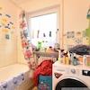 - Bodenbeläge: Fliesen im Bad und WC; Laminat im Wohnzimmer, Kinderzimmer und Flur
