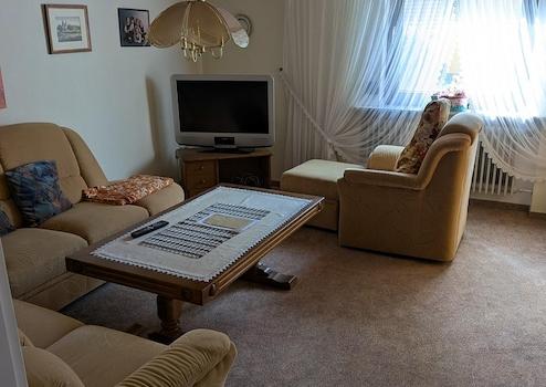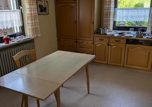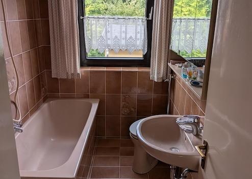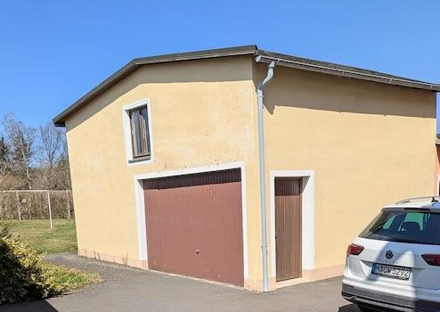 Das Haus ist eine gepflegte Doppelhaushälfte in Waldsassen. Dazu gehört ein großer Garten mit einer Terrasse und ein Keller und eine Garage. In der Garage ist Platz für 2 Stellplätze. Die Garage hat auch eine Grube, wenn jemand gern am Auto selber was machen möchte.