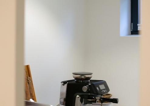 Der Wohn- und Essbereich überzeugt mit einer raumhohen Fensterfront zur Gartenseite, die ein beeindruckendes Raumgefühl erzeugt und den Blick in die grüne Umgebung freigibt. Die moderne Küche mit hochwertigen Einbaugeräten ist nicht nur funktional, sondern auch gestalterisch ein Highlight. Ergänzt wird sie durch einen angrenzenden Vorrats- und Technikraum.