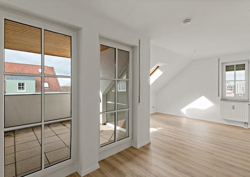 Sie wünschen sich ein liebevoll zubereitetes Frühstück in der Morgensonne oder einen Grillabend mit Freunden im Abendrot – am liebsten auf einer uneinsehbaren Dachterrasse? Dann haben Sie Ihre Traumwohnung soeben gefunden.
