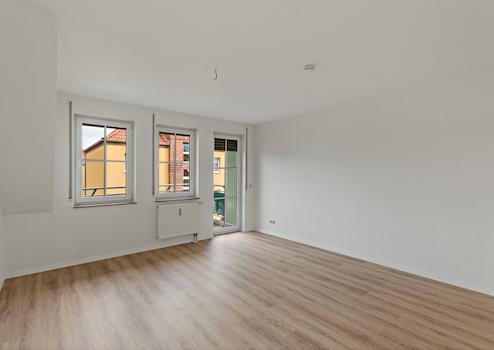Der Grundriss überzeugt durch drei separat begehbare Zimmer, die sich ideal für Paare, Familien oder auch das Arbeiten von zu Hause eignen. Zwei der Räume sind optimal als Schlafzimmer nutzbar, während das großzügige Wohnzimmer den direkten Zugang zur Dachterrasse bietet – Ihrem privaten Rückzugsort über den Dächern von Halle.