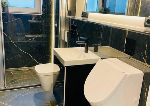 •Großformatige Fliesen in allen Räumen