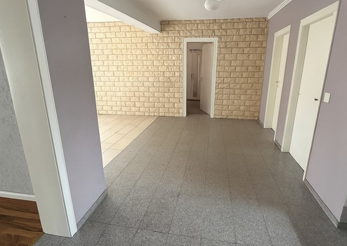 Der riesige Eingangsbereich lädt ein als zweites Wohnzimmer genutzt zu werden oder völlige Freiheit bei der Neuplanung des Grundrisses.