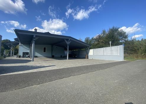 Ein großer Carport bietet ausreichend Platz für Ihre Fahrzeuge.