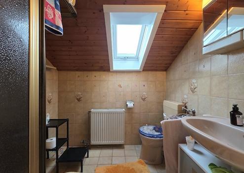 Über die versetzte Bauweise erreichen Sie den Schlafbereich mit Kinderzimmer, Schlafzimmer und Badezimmer. Im Dachgeschoss stehen Ihnen ein weiteres Schlafzimmer, ein zusätzliches Kinderzimmer sowie eine Dusche zur Verfügung – perfekt als Jugendbereich, Gästebereich oder Homeoffice.