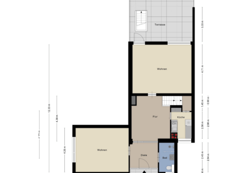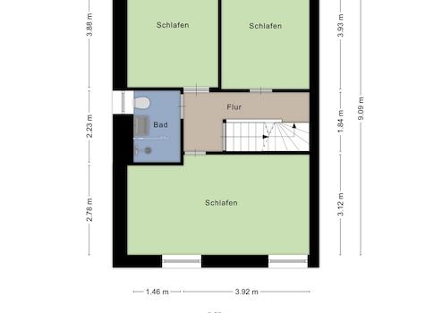 Der Zugang zum Haus erfolgt über den vorgelagerten Eingangsbereich. Direkt im Eingangsbereich rechts befindet sich das Bad im Erdgeschoss, ausgestattet mit bodengleicher Dusche und Fenster. Von der Diele aus gelangen Sie in den zentralen Flur des Erdgeschosses, der die weiteren Räume funktional miteinander verbindet.