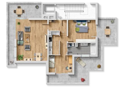 * umliegende Dachterrasse mit circa 54m² und Wasseranschluss