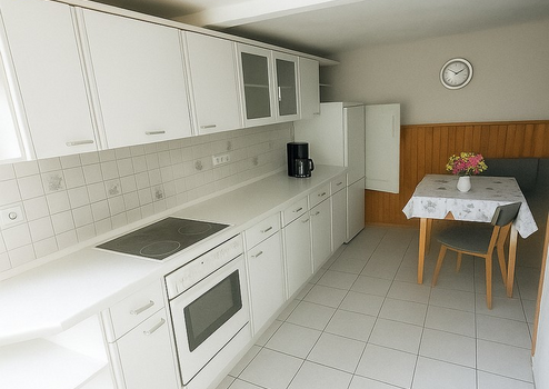 Küche mit angrenzender Speisekammer. Beide Räume verfügen über eine Fußbodenheizung (ca. 2010).