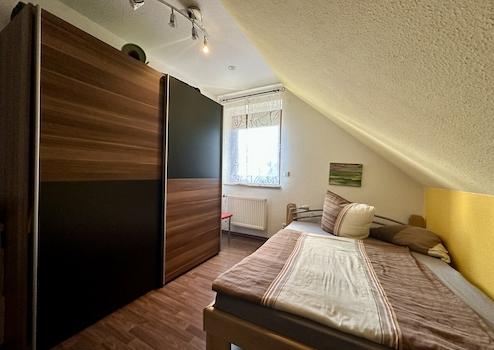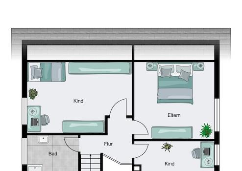 Im Dachgeschoss stehen drei gut geschnittene Schlafzimmer zur Verfügung, darunter ein Elternschlafzimmer sowie zwei Kinderzimmer. Ein Tageslichtbad mit Badewanne komplettiert diese Etage und sorgt für eine angenehme Aufteilung für den Familienalltag.
