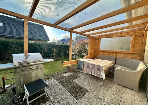 Abgerundet wird das Angebot durch einen überdachten Freisitz, eine Garage sowie ein vollständig eingezäuntes Grundstück, das insbesondere für Familien mit Kindern oder Haustieren attraktiv ist.
