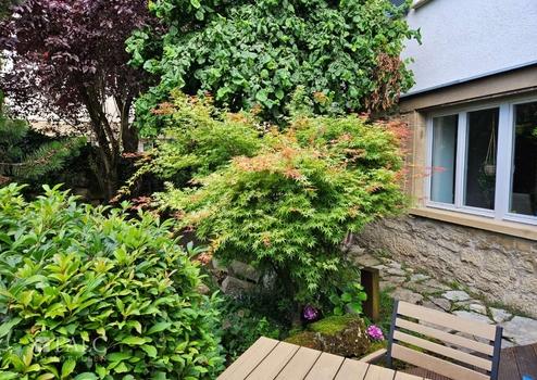 Der ca. 121 m² große, sorgsam angelegte Garten mit Terrasse und idyllischem Bachlauf, bildet eine grüne Oase mitten in der Stadt. Er lädt mit seinem beruhigenden Wasserspiel zum entspannten Verweilen ein und eignet sich gleichermaßen für geselliges Beisammensein und Spielträume für Ihre Kleinen an der frischen Luft.