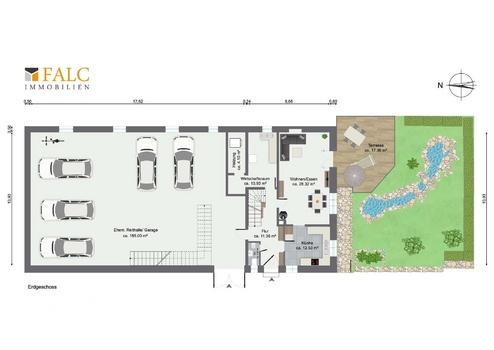 - Gartenbereich: ca. 121m², davon ca. 17m² Terrasse