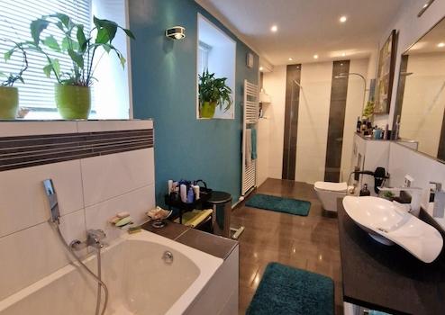 Dieses umfangreiche sanierte Mehrfamilienhaus mit einer Gesamtfläche von 420 m² umfasst insgesamt vier Wohneinheiten. Die Eigentümerwohnung bietet mit 164 m², vier Zimmern, einem separaten Eingang, einer großzügigen, überdachten Terrasse sowie einem schönen großen Garten einen Haus-im-Haus-Charakter. Damit verbindet sich der finanzielle Vorteil eines Mehrfamilienhauses als konstante Einnahmequelle mit den Vorzügen des entspannten Wohnens in den eigenen vier Wänden. Der eigene Garten mit dem zusätzlich überdachten Grillplatz lädt zum Erholen und Feiern ein.