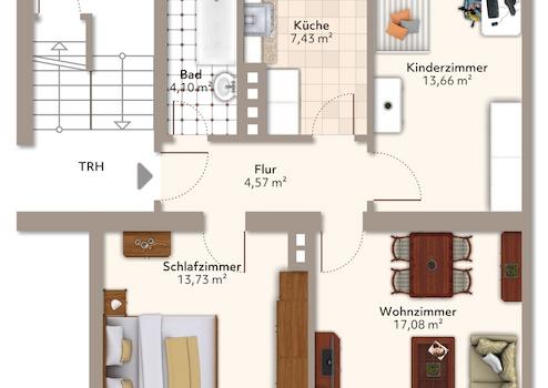 - 3-Raumwohnung mit 66,19 m² Wohnfläche