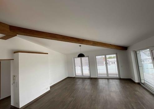 Gehen wir nun gedanklich in die Penthouse-Etage. Ein langgezogener Flur wird hier von Lichtbändern zum Treppenhaus hin mit Tageslicht versorgt. Eine separate Toilette mit Waschbecken, Urinal und WC sowie einem Fenster ist hier vorhanden. Staubsauger & Co finden in dem nebenan befindlichen Abstellraum ihren Platz. Mittig des Flurs betreten Sie den voluminösen Wohn-/Ess-Kochbereich. Optisch gegliedert befindet sich die Küche rechter Hand. Die vorhandene Einbauküche inklusive E-Geräte ist bereits im Kaufpreis enthalten. Davor können Sie bequem in diversen Einrichtungsvarianten Ihren Essbereich stellen. Viel Platz bleibt Ihnen für die Wohnlandschaft und Ihren weiteren Wohnmöbeln übrig. Die großen Fensterfronten, teilweise mit Schiebetüren, erhellen den Raum sehr angenehm mit Tageslicht. Ebenso haben Sie diverse Austrittsmöglichkeiten auf die Dachterrasse. Ein Teil dieser Terrasse wurde mit Glaselementen wind- und regengeschützt ausgestattet. Eine elektrische Markise beschattet den Hauptteil der Terrasse.