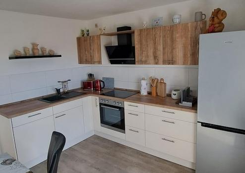 Die Einbauküche mit einzelnstehender Kühl-Gefrierkombination, gekauft 2020 für die DHH kann vom Vormieter für VB 1.500 übernommen werden