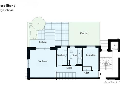 Die gut geschnittene Gartenwohnung verfügt über eine Fläche von 117,5 m² , die sich auf 2 Zimmer im Hochparterre, einen Hobbyraum im Souterrain, 2 Bäder, Küche, Balkon, Diele verteilt. Das Highlight der Wohnung ist der Wohn - und Essbereich mit Balkon und großzügiger Treppe in den idyllischen eigenen 60 m² großen und nach Süden ausgerichteten Gartenanteil.