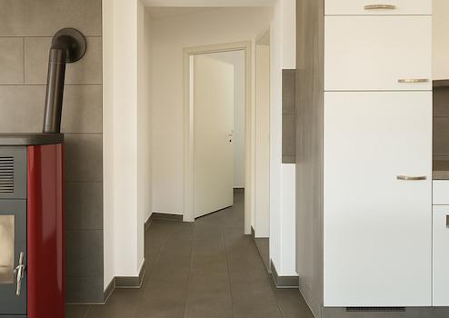 * ein Pelletsofen im Erdgeschoss