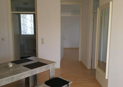 Die helle lichtdurchflutete Wohnung verfügt über 3 schöne Zimmer. Das Wohn-und Esszimmer ist schön hell und geräumig und offen gehalten. Eine Esszimmer-Gruppe in Steinoptik steht für Sie zur Verfügung, sowie eine kleine Bistro-Sitzgruppe zum relaxen. Hervorzuheben ist, dass man von jedem Raum einschließlich der Küche Zugang auf die Balkone hat.