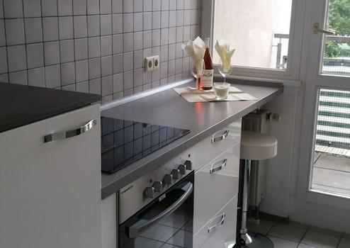 Eine moderne Einbauküche gehört zu dieser schönen Wohnung.