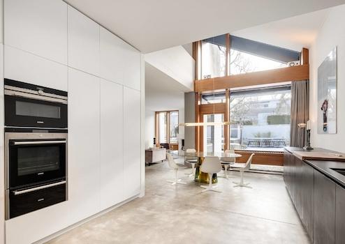 Dieses exklusive Architektenhaus überzeugt auf 387 Quadratmetern Wohn-und Nutzfläche mit einer herausragenden Designlinie auf Luxuslevel, außergewöhnlicher Großzügigkeit und lichtdurchfluteten Räumen. Raumhöhen von bis zu 5,50 Metern, hochwertiger Design-Sichtestrich mit Fußbodenheizung sowie edle Holzdetails schaffen ein einzigartiges Ambiente zeitloser Eleganz.