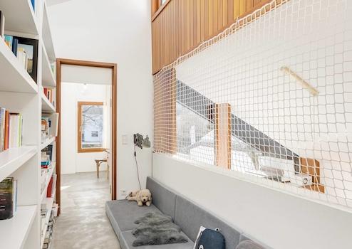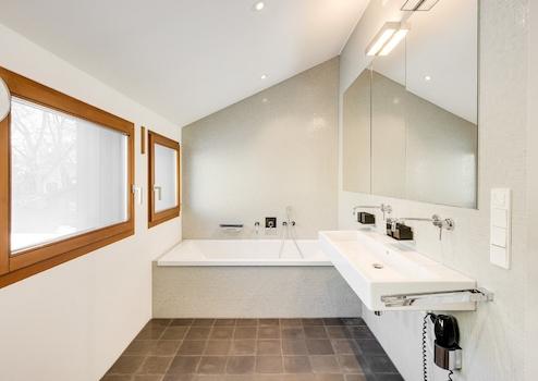 Der offene Wohn- und Essbereich mit Kamin öffnet sich zur sonnigen Südwest-Terrasse und dem Swimmingpool mit Gegenstromanlage – ein Ort für entspannte und gesellige Stunden im Freien. Die maßgefertigte Luxus-Küche mit hochwertigen Einbaugeräten fügt sich harmonisch in das intelligente Raumkonzept ein. Ein separater Wohnbereich mit eigenem Eingang im Erdgeschoss bietet flexible Nutzungsmöglichkeiten, etwa für ein Au-pair, größere Kinder oder Gäste.