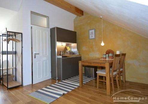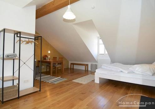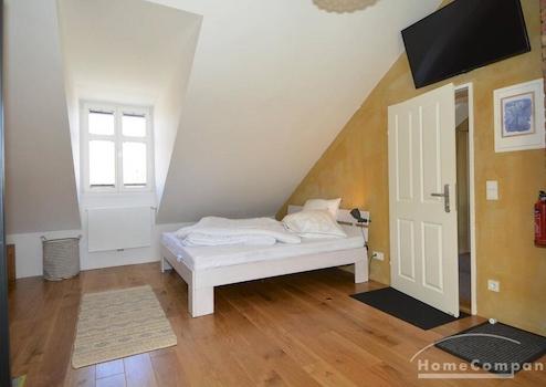 Neu sanierte Altbauwohnung im Dachgeschoss. Die Wohnung verfügt über ein Wohn-/Schlafzimmer mit einen Bett (180cm). Die Küche ist offen zum Wohnraum. Die Wohnung ist komplett ausgestattet mit TV und Geräten. Der S-Bahnhof Babelsberg (S1,S7) befindet sich in 10 Minuten Fußweg. Die Wohnung liegt direkt am Park Babelsberg und in der Nähe des Stadtbads Babelsberg.