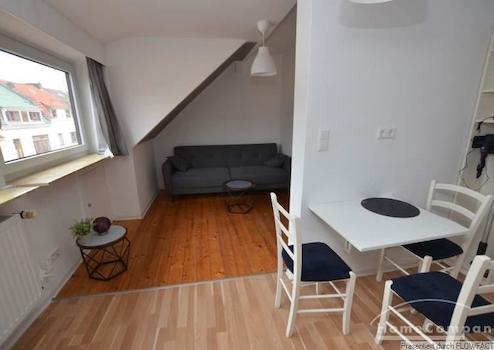 Diese Wohnung liegt in einer ruhigen Seitenstraße in der Nähe des Flughafens. Über kleinen zentralen Flur gelangt man in alle Räume. Die Küche und der Wohnbereich sind durch eine Zwischenwand getrennt. Im Schlafzimmer befindet sich neben einigen Schränken, noch ein Arbeitsplatz für das Homeoffice. Durch Außen-Jalousien ist es möglich, das Schlafzimmer komplett abzudunkeln. Im kleine Badezimmer befindet sich eine Dusche. Die Wohnung ist perfekt für 1 Person.