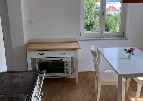 Die charmante und liebevoll renovierte Altbauwohung aus den 30ern kann auf Zeit gemietet werden. Die im EG gelegne Wohnung verfügt über eine Wohn- Essküche, ein Bad, zwei Schlafzimmer und ein kleiner Haushaltsraum mit Waschmaschine und Trockner.